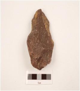 | Description / विवरण | A small handaxe made on a flake, large flake scars on both surface, block on block method. |