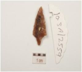 | Description / विवरण | A tang arrow head made of chert with retouches on edges and leaf shape. |