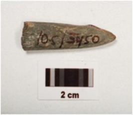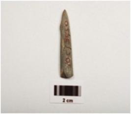 | Description / विवरण | A fragment of a stone point, one end pointed and another damaged slightly chipped off, grayish in colour. |