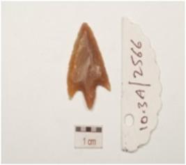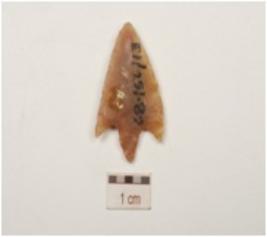 | Description / विवरण | A tang arrow head, retouched edges and leaf shape. |