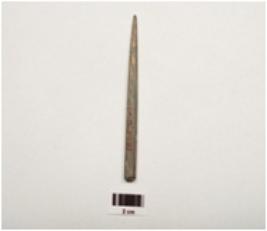 | Description / विवरण | A stone stylus polished surface with a pointed end partly broken from other end and square in section. |