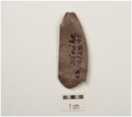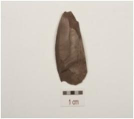 | Description / विवरण | A chert end struck utilized flake on core with three blade scars on dorsal, prepared platform and diffused bulb on ventral. |