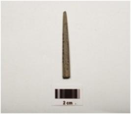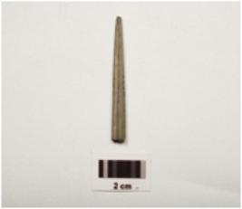 | Description / विवरण | Fragment of a stone point with polished surface, pointed at one end, partly broken at other end and rectangular in section. |