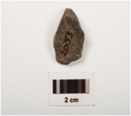 | Description / विवरण | A stone flake with cortex, flake scars and smooth surface, dark grey in colour. |