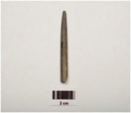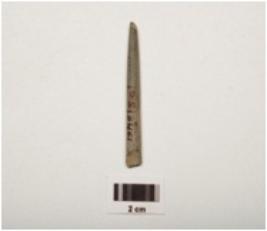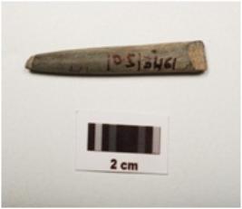 | Description / विवरण | Fragment of a stone point smooth surface with slightly broken pointed end, partly broken from other end and circular in section. |