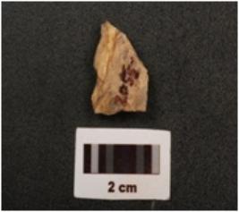 | Description / विवरण | A quartzite flake with flake scars and on cortex surface, use wear marks on one edge. |