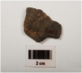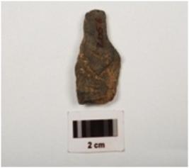 | Description / विवरण | A basalt flake with flake scars and smooth surface, dark grey in colour. |