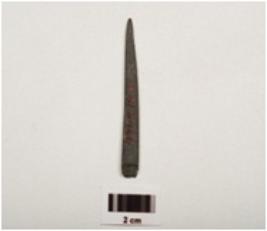 | Description / विवरण | Fragment of a stone point polished surface with a pointed end, partly broken from other end and rectangular in section. |