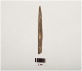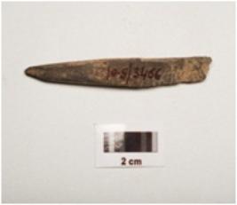 | Description / विवरण | A stone point polished and slightly chipped off surface, one pointed and one thick end and rectangular in section. |