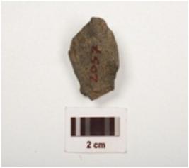 | Description / विवरण | A basalt stone flake with flake scars and smooth surface, use wear marks on edge and dark grey in colour. |