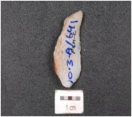 | Description / विवरण | Utlized flake with use wear marks along the cutting edge. |