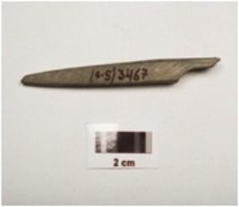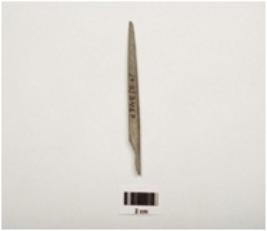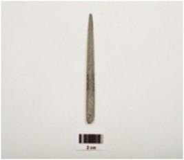 | Description / विवरण | A stone point with polished surface pointed at one end, partly broken at other end and square in section. |
