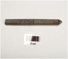 | Description / विवरण | A stone point with polished surface one pointed end partly broken from other end and circular in section. |