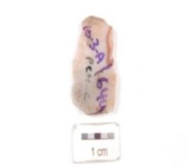 | Description / विवरण | Chert flake, prepared platform, prominent bulb and triangular cross-section. |
