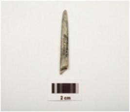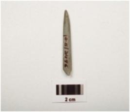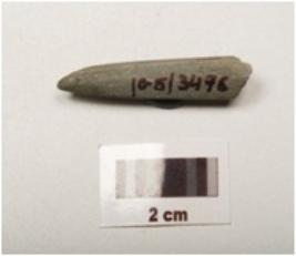 | Description / विवरण | Fragment of a stone point with polished surface printed at one end, partly broken from other end and circular in section. |