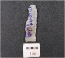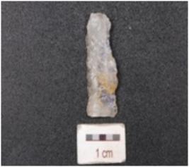 | Description / विवरण | Quartz blade with prepared platform, prominent bulb and use-wear marks along the cutting edge. |