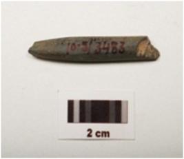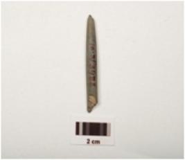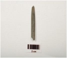 | Description / विवरण | Fragment of a stone point polished surface with a thick pointed end partly broken from other end and rectangular in section. |