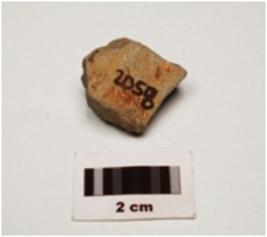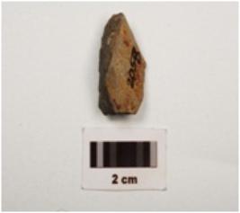 | Description / विवरण | A basalt stone flake with flake scars and cortex on surface. |
