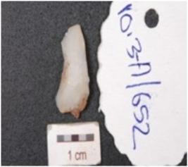 | Description / विवरण | Chert flake made on end struck flake, cortex partly intact and triangular cross-section. |