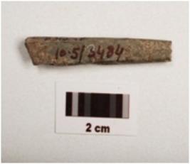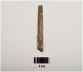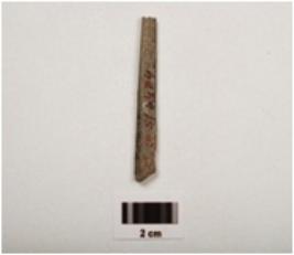 | Description / विवरण | A fragment of a point stone object, both ends broken, slightly chipped off, square shaped cross section grayish in colour, |