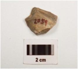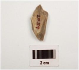 | Description / विवरण | A chert flake with flake scars and smooth surface, diffused bulb on ventral and grey in colour. |