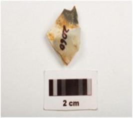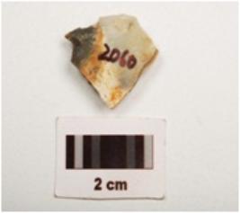 | Description / विवरण | A chert flake with smooth and flake scars, on surface and bulb on ventral. |