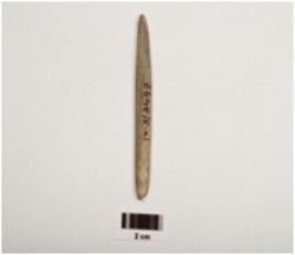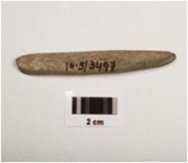 | Description / विवरण | A stone point one side pointed end, another slightly broken, smoky grayish in colour, smoothly polished surface. |