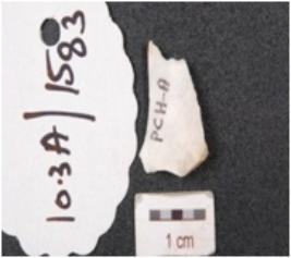 | Description / विवरण | A flake made of chert, flake scars on surface and irregular shape. |