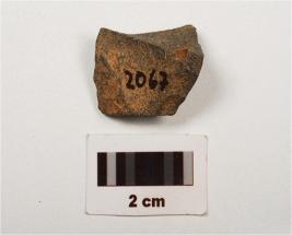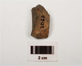 | Description / विवरण | A basalt stone flake with flake scars, smooth surface and use-wear marks on edges. |