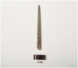 | Description / विवरण | Fragment of point with polished surface, pointed at one end, partly broken from other end and circular in section. |
