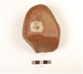 | Description / विवरण | A chopping tool made on basalt pebble, bifacial, flake scars visible on the surface and smooth surface. |