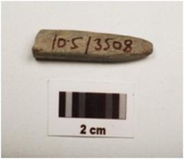 | Description / विवरण | Fragment of a stone point with a pointed end polished surface partly broken at other end and square in section. |
