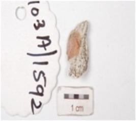 | Description / विवरण | A flake made of chert, flake scars on surface and irregular shape. |