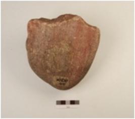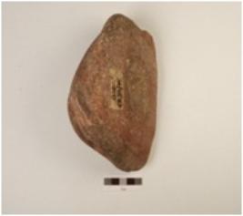 | Description / विवरण | A chopper made on quartzite pebble, cortex is visible at the butt end and flake scars visible on one side. |