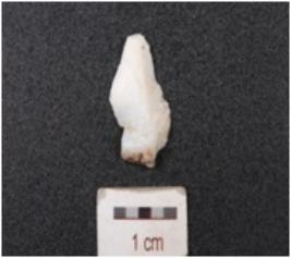 | Description / विवरण | A flake made of chalcedony, flake scars on dorsal side and wavy edges. |
