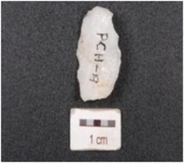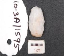 | Description / विवरण | A flake made of quartz, flake scars on dorsal side, wavy edges, bulb on ventral side and prepared platform. |