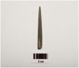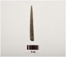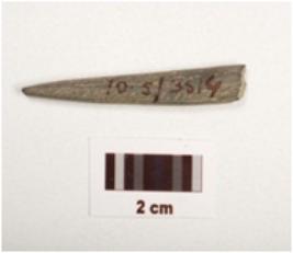 | Description / विवरण | A fragment of a stone point, one end pointed another damaged circular cross section, black grayish in colour, smoothly polished surface. |