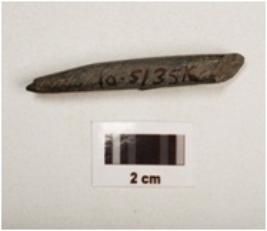 | Description / विवरण | Fragment of a stone point with polished surface, pointed at one end partly broken from other end and square in section. |