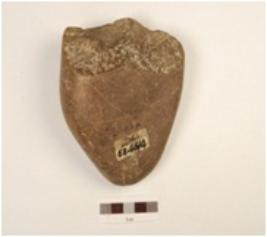 | Description / विवरण | A chopper made on basalt pebble, cortex visible at butt end, unifacial and smooth surface. |