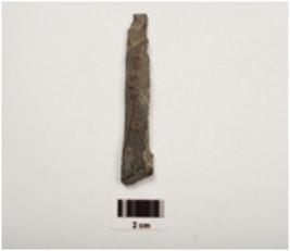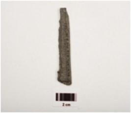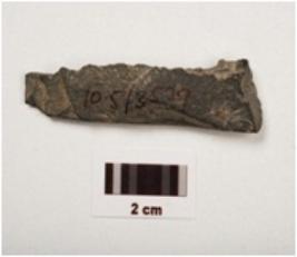 | Description / विवरण | An unfinished damaged arrow haed, damaged both sides, chipped off surface, taprin shaped, grayish colour. |