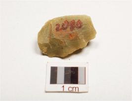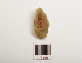 | Description / विवरण | Fragment of chert blade with wavy ridge on dorsal, smooth ventral, triangular in section and light green in colour, partly broken from one end. |