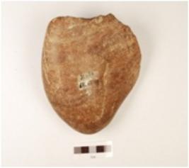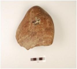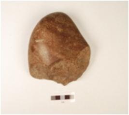 | Description / विवरण | A chopper made on quartzite pebble, flake scars visible at one end and cortex is visible. |