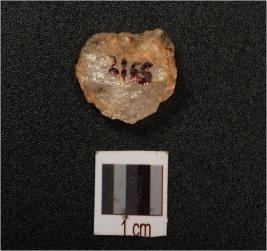 | Description / विवरण | A quartz flake with smooth surface and use-wear marks on edges. |