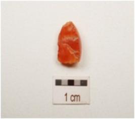 | Description / विवरण | A flake made on carnelian, blade scars on the surface, use wear marks along cutting edges red in colour, |