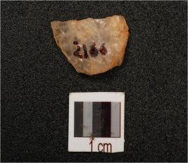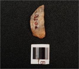 | Description / विवरण | A quartz flake with smooth surface, prepared platform, diffused bulb on ventral and blunt edges. |