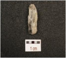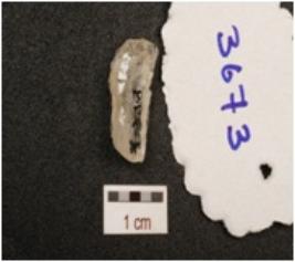 | Description / विवरण | A quartz crystal lunet, blade scars on the surface, rough surface and use wear marks along the cutting edges, |