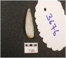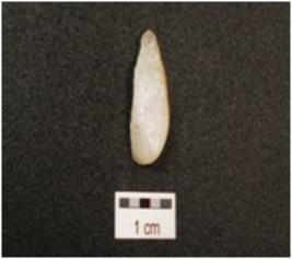 | Description / विवरण | A triangular quartz point, with cortex on dorsal side and flake scars on the surface, |