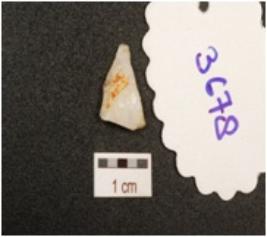 | Description / विवरण | A triangular quartz point, made on end struck flake, pointed distal end and slightly broken and prepared platform. |