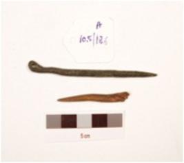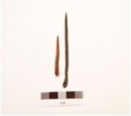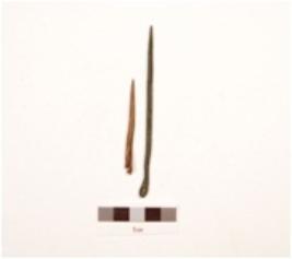| Description / विवरण | Two needle with a pointed end and other end have on eye. Corroded surface, other needle without eye. |