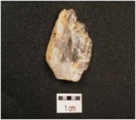 | Description / विवरण | A quartz flake prepared platform blade scars on the surface, cortex on the dorsal side and wavy cutting edges, |